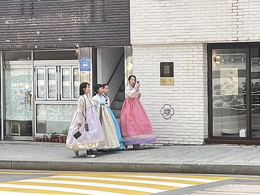 A quel punto ho fatto una breve indagine e ho scoperto l'arcano: nei giorni delle feste nazionali, i sudcoreani vanno a visitare i monumenti delle loro città. E lo fanno indossando tenute d'epoca, in segno di rispetto per la gloria degli avi.