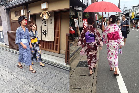 Sono molti i Paesi asiatici dove le giovani generazioni non disdegnano i costumi tradizionali ma, in genere, li indossano in occasioni particolari come per recarsi nei templi a pregare oppure per visitare i monumenti nei giorni di festa nazionale. In Giappone, invece, il kimono è proprio l'abito del sabato sera: c'è una bella differenza.