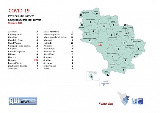 In provincia di Grosseto nelle ultime 24 ore la Asl Toscana sud est non segnala nuovi casi positivi di coronavirus. Due contagi in tutta la Toscana