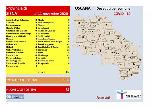 E' Poggibonsi a segnare un'altra impennata di contagi con ben 11 casi rilevati, ma anche a Sinalunga la situazione non migliora: 144 il totale di positivi a cui si aggiungono i 9 di oggi.