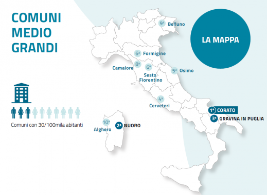 Generosità da rosa dei primi 10 anche per i comuni medio-grandi (30mila-100mila abitanti), con la presenza di Sesto Fiorentino nella Città metropolitana di Firenze (6° posto, indice di 70,52/100) e di Camaiore in Versilia (8° posto, indice di dono 70,31/100).